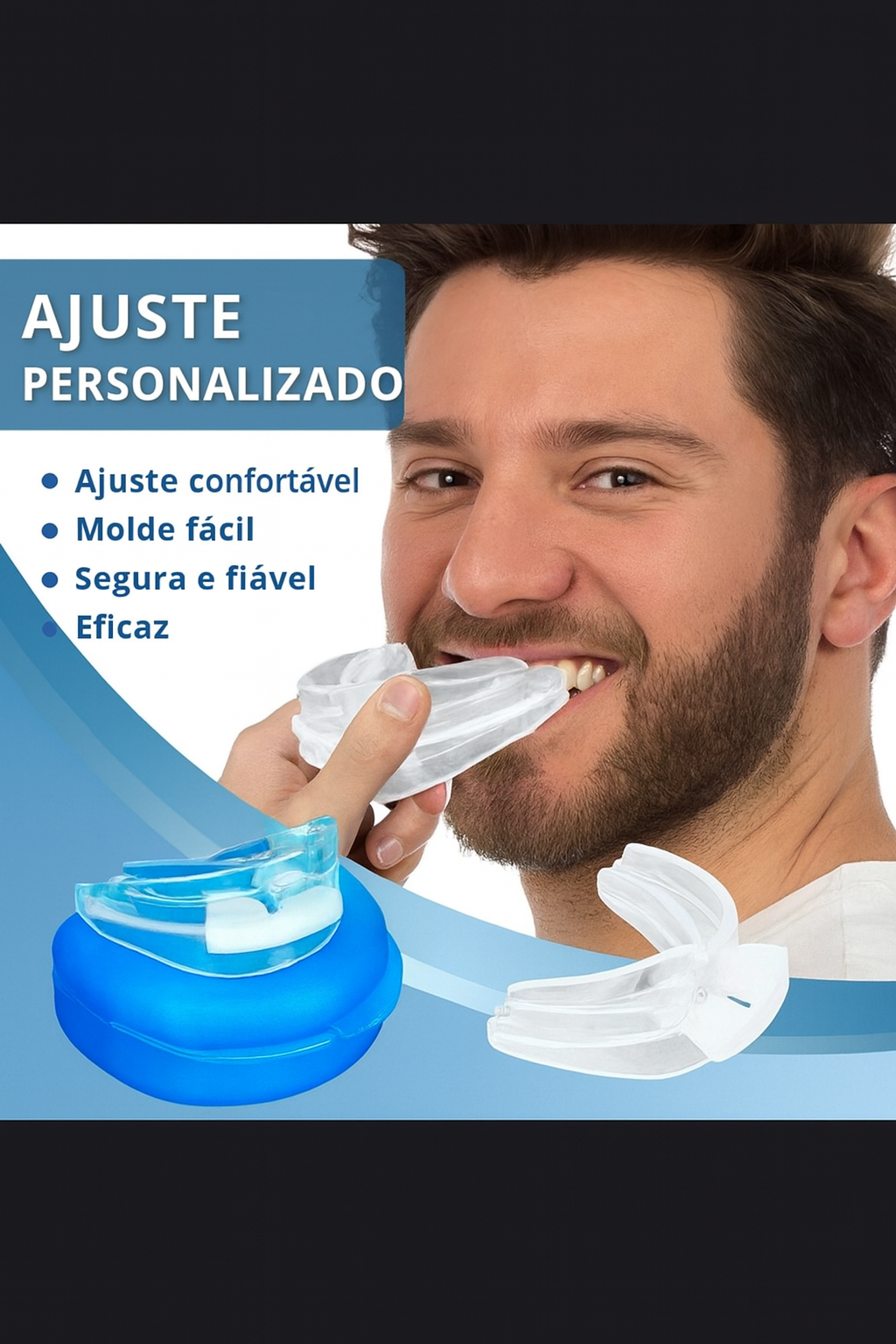 O ANTI-RONCO BUCAL™ mantém as vias respiratórias abertas, reduzindo o ronco e promovendo uma respiração mais suave. A sua estrutura confortável melhora o descanso, permitindo noites tranquilas e um acordar mais leve e revigorado.